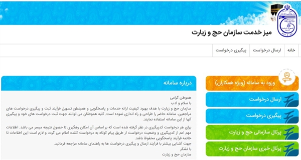 سازمان حج و زیارت با هدف بهبود کیفیت ارائه خدمات و پاسخگویی و همینطور تسهیل فرآیند ثبت و پیگیری درخواست های مراجعین، سامانه ای تحت عنوان "میز خدمت سازمان حج و زیارت" را به آدرس اینترنتیhttps://mizekhedmat.haj.ir طراحی و راه اندازی نموده است و کلیه هموطنان محترم می توانند جهت ثبت درخواست های خود و پیگیری آنها از این سامانه استفاده نمایند.