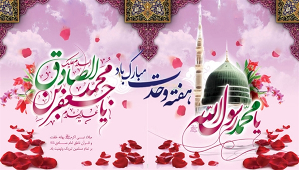 فرا رسیدن میلاد با سعادت حضرت ختمی مرتبت محمد مصطفی(صلی الله علیه و آله) و ولادت مسعود و فرخنده رئیس مذهب فقه جعفری حضرت امام جعفر صادق(علیه السلام) و هفته ی وحدت،بر عموم مسلمانان مبارک باد.