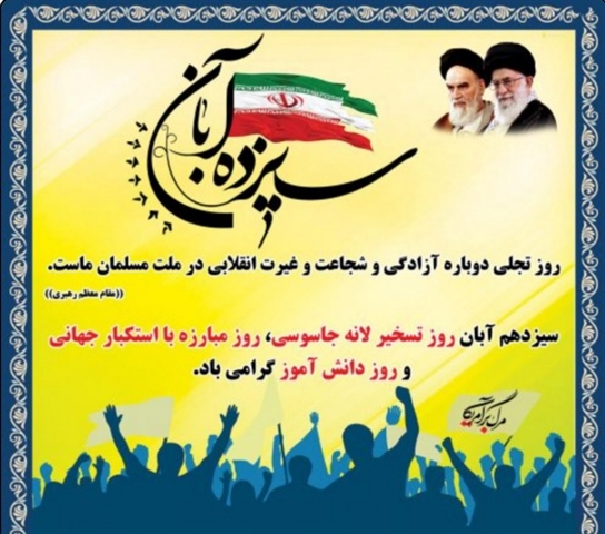 13 آبان، روز ملی مبارزه با استکبار جهانی و روز دانش آموز گرامی باد.