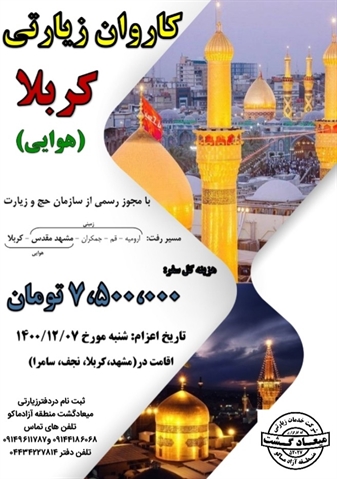 ثبت نام کاروان زیارتی کربلا (هوایی) توسط دفاتر زیارتی استان انجام می شود.