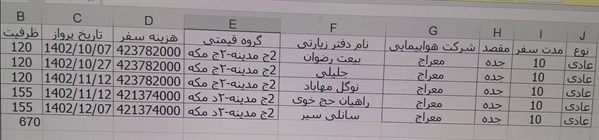 جدول تاریخ پروازهای عمره مفرده