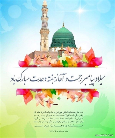 فرا رسیدن 17ربیع الاول خجسته زاد روز رسول مهربانی و عزت ، مبشر آگاهی و حکمت ، پرچمدار عدالت و برابری حضرت ختمی مرتبت محمد مصطفی (ص)، آغاز هفته وحدت و همچنین میلاد مسعود و فرخنده امام جعفر صادق (ع) ، ششمین اختر تابناک امامت و ولایت و مؤسس مذهب جعفری بر تمامی مسلمین تبریک و تهنیت باد.